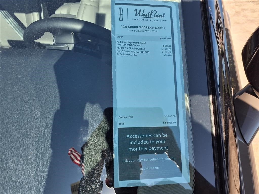 West Point Lincoln Sugar Land is delighted to offer this great 2026 Lincoln Corsair Premiere in Harbor Gray with Ebony/Medium Smoked Truffle interior. Well equipped with Equipment Group 101A (18 Bright Machined Aluminum Wheels, 2 Additional USB Ports in Rear of Center Console, 60/40 EasyFold Rear Seat w/Power Seatback Release, Frameless Auto Dimming Rearview Mirror, Hands-Free Liftgate, Heated Sideview Mirrors, Heated Steering Wheel, Heated/Ventilated Driver & Front Passenger Seats, Micro-Perf Lincoln Soft Touch Captain's Chairs, Phone As A Key (PAAK), Power Tilt/Telescoping Steering Column w/Memory, Rain Sensing Wipers, Universal Garage Door Opener, Windshield Wiper De-Icer, and Wireless Charging Pad), Jet Appearance Package (Body-Color Exterior Elements, Pillar Black Exterior Elements, and Wheels: 20 Black Aluminum), 360-Degree Camera, 4-Wheel Disc Brakes, 9 Speakers, ABS brakes, Air Conditioning, Alexa Built-In, All-Weather Floor Liners w/Fr&Rr Carpet Floor Mats, Alloy wheels, AM/FM radio: SiriusXM with 360L, Apple CarPlay/Android Auto, Auto High-beam Headlights, Auto-dimming Rear-View mirror, Automatic temperature control, Brake assist, Bumpers: body-color, Compass, Delay-off headlights, Driver door bin, Driver vanity mirror, Dual front impact airbags, Dual front side impact airbags, Electronic Stability Control, Emergency communication system: 911 Assist, Exterior Parking Camera Rear, Four wheel independent suspension, Front anti-roll bar, Front Bucket Seats, Front Center Armrest, Front dual zone A/C, Front License Plate Bracket, Front Parking Sensors, Front reading lights, Fully automatic headlights, Heated door mirrors, Heated front seats, Illuminated entry, Knee airbag, Leather steering wheel, Lincoln Soft Touch Heated Front Captain's Chairs, Low tire pressure warning, Memory seat, Navigation system: Connected Navigation (4-year trial), Occupant sensing airbag, Outside temperature display, Overhead airbag, Overhead console, Panic alarm, Panoramic Vista Roof w/Power Shade, Passenger door bin, Passenger vanity mirror, Post-Collision Braking, Power door mirrors, Power driver seat, Power Liftgate, Power passenger seat, Power steering, Power windows, Radio data system, Radio: Lincoln Premium Audio System w/MP3, Rear anti-roll bar, Rear Parking Sensors, Rear reading lights, Rear seat center armrest, Rear window defroster, Rear window wiper, Remote keyless entry, Reverse Brake Assist, Security system, SiriusXM w/360L Radio, Speed control, Speed-sensing steering, Speed-Sensitive Wipers, Split folding rear seat, Spoiler, Steering wheel mounted A/C controls, Steering wheel mounted audio controls, SYNC 4, Tachometer, Telescoping steering wheel, Tilt steering wheel, Traction control, Trip computer, Variably intermittent wipers, and Wheels: 18 Warm Painted Alloy.